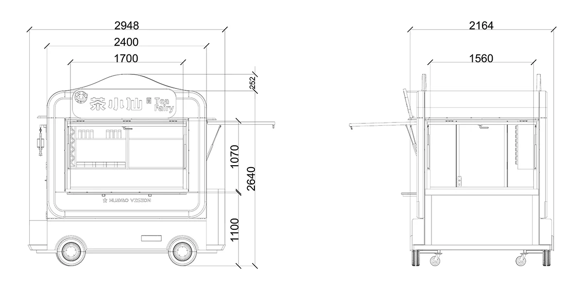 يبلغ طول أحجام المنتجات بشكل أساسي 4 أمتار (مناسبة لسيناريوهات أعمال المشروبات)، مع نافذة مبيعات مقترنة بطاولة تشغيل قابلة للطي، ومظلة للشمس ومظلة مطر، وحواجز مقاومة للغبار مع مراعاة سهولة طلب الوجبات وخلطها والتقاطها. بالمقارنة مع متاجر المشروبات الثابتة، فإنه يوفر بشكل كبير تكاليف الإيجار والديكور والعقارات، ويمكنه تشغيل النقاط بمرونة وفقًا لتغيرات تدفق الركاب، والتكيف مع مجموعة متنوعة من السيناريوهات مثل التنقل في ساعة الذروة الصباحية، والشاي بعد الظهر، والأسواق الليلية، والمعارض. فهو يساعد على الاستحواذ على السوق الاستهلاكية بسرعة وهو المعدات المفضلة لريادة الأعمال الصغيرة والنوافذ المنبثقة للعلامات التجارية وخدمات المشروبات السيناريو